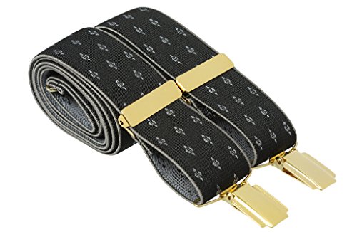 Best Seller! Quality Clip On Elastic Mens Trouser Braces With Small Design - Gold Coloured Clips - Assorted Colours and Sizes - Made In Britain (Standard (44 Inches Long), Black) Review